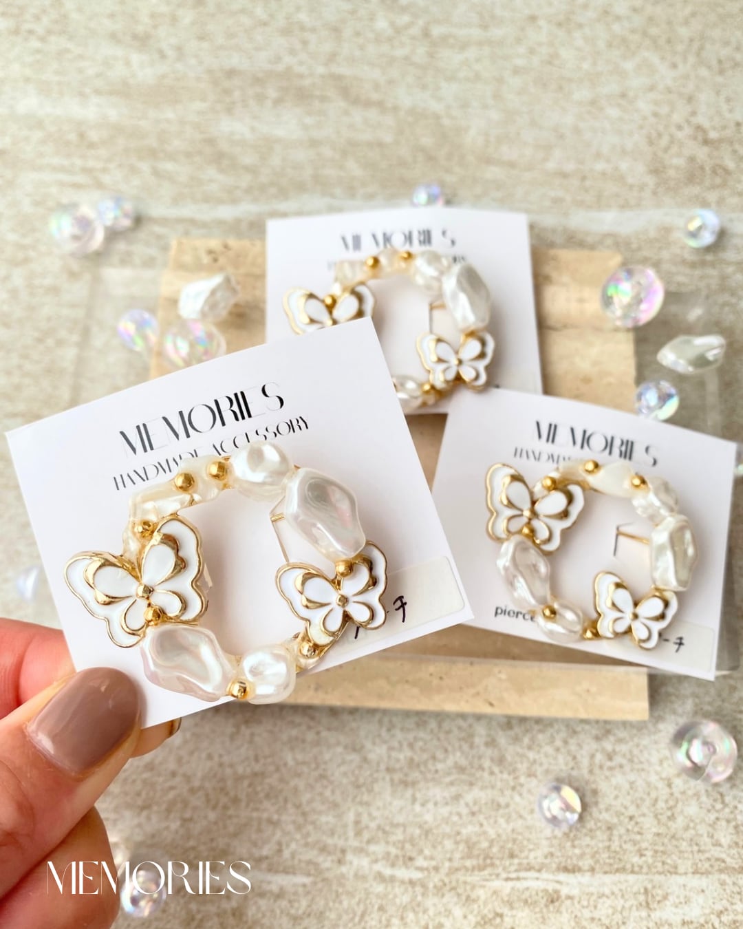 蝶々ボタン×パール×シェルパーツを豪華に組み合わせた