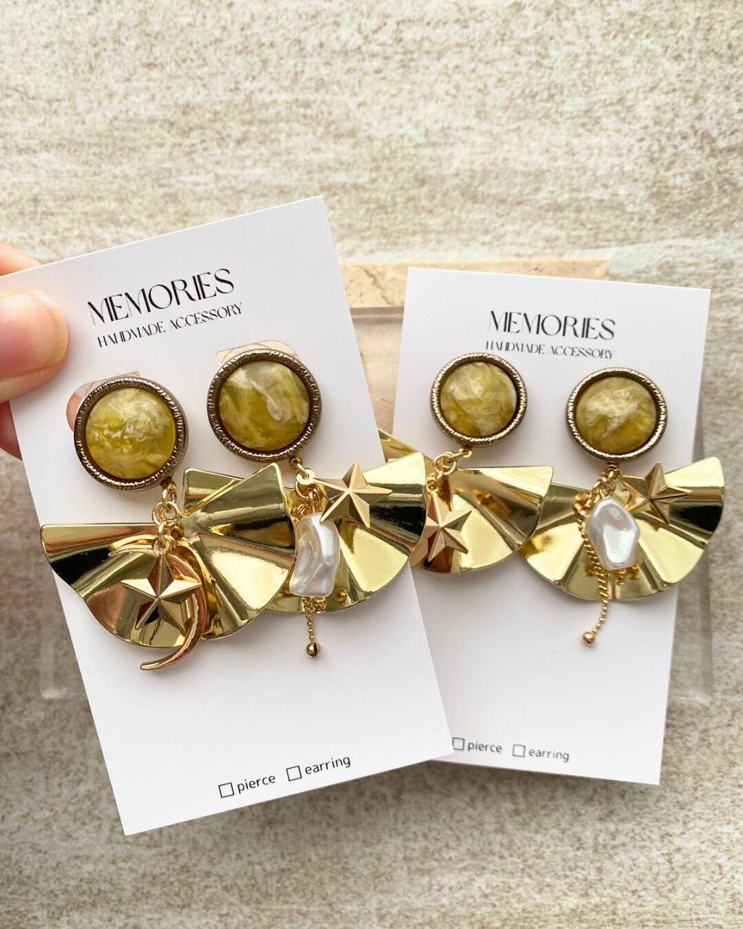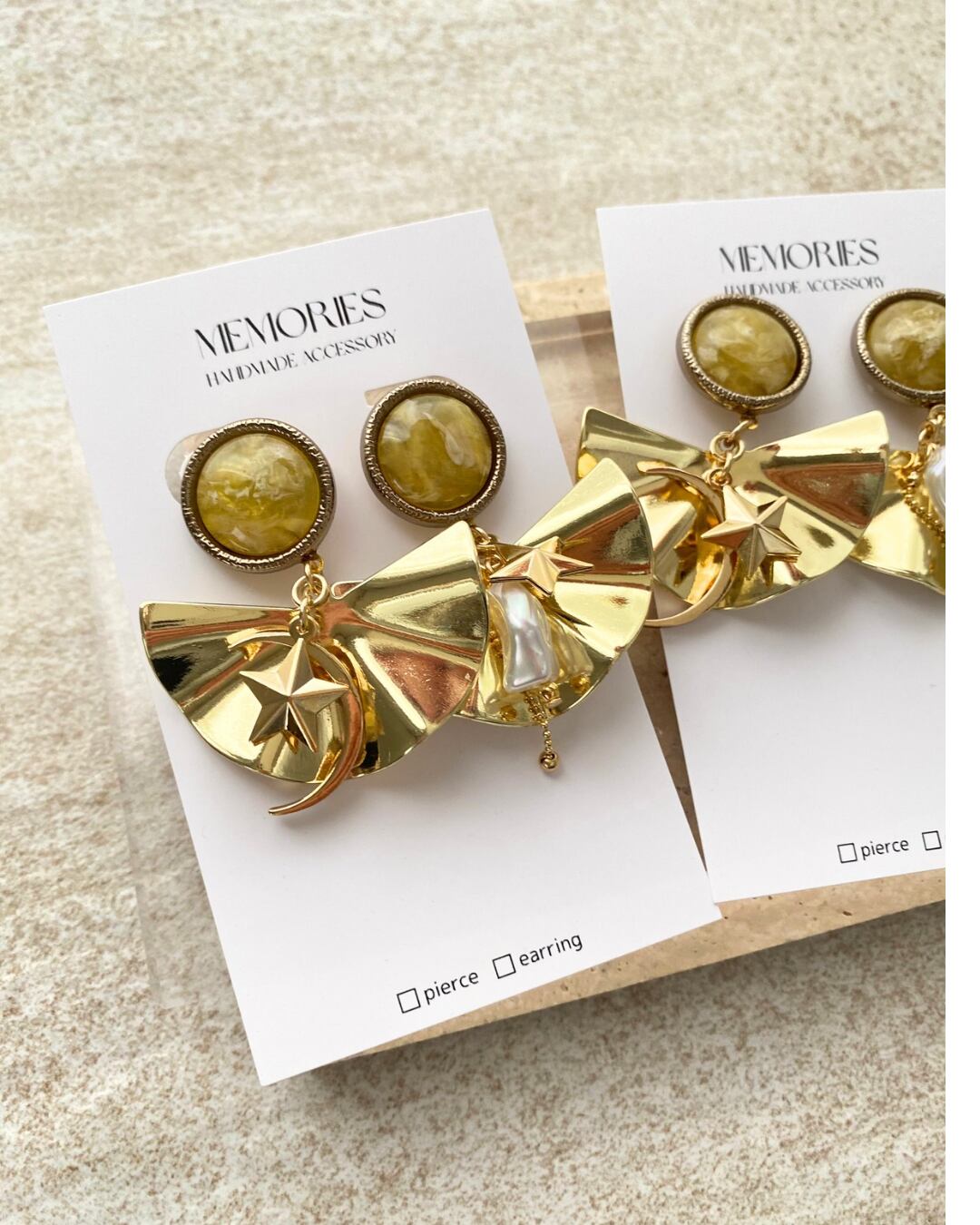 〔イヤリング〕イエロー×ゴージャスパーツ